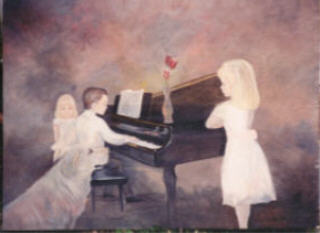 Children with Piano, 30" x 40" Acrylic on Belgium linen - TX commission