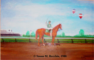 These Thoroughbred portraits were painted in the early 1980's, exhibited in Saratoga, NY until 1988, and are presently for display purposes only until print marketing agreements are obtained from the owners.