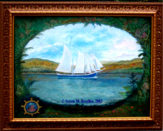 In Memory of Captain John "Jack" Halahan, 1928-1999. This 103', 53 year old schooner carried cargo to the coast of Africa, made 37 transatlantic voyages, and sailed up the Hudson River, as depicted in this portrait. "You'll find all these magnificent places in the world he said, but sailing the Hudson River really is great!" - 1999.